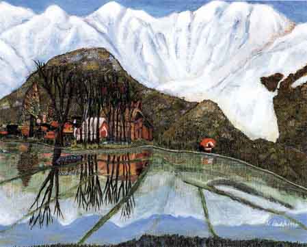 絵を習い始めてから家の事情でほとんど描けず、やっと念願がかなって7〜8年です。その間、グループ展数回、二人展1回、個展3回を開催しました。●制作意図/白馬村から望む連峰に多くの残雪の美しさを見い出し、その麓に広がる小山と林。点在する家々。雪解け水を湛えた田んぼ。やがて始まる田植えを思い、この風景から受けた感動をそのまま絵に描き表わしました。