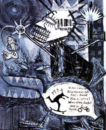 1975年 福岡県生まれ 1997年第7回全日本アートサロン大賞受賞●制作意図/小さな街の小さな情景を描きました。.(現代の若者が突っ走る街の情景)