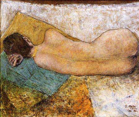 65才で絵を習い始めた。今年で10年になる。本職の医者は昨年末辞めた。絵のある晩年を楽しんでいる。●制作意図/こちら向け我も寂しき秋の風---芭蕉。この頃ずっーと女房はベッドに入るとあちら向き。この絵は昼下がり、モデルを色彩の上に寝かせてあちら向き。こちらは向かない。