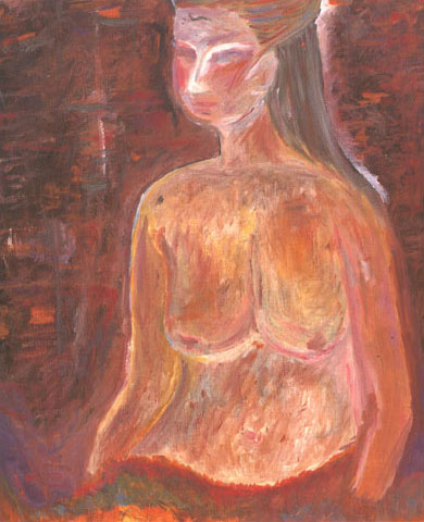 1939年生まれ。仕事を持ち、趣味として油絵を始めて6年。今は生活の一部として喜びとして楽しく描いています。絵具の楽しさを感じています。●制作意図/少女の初々しさ、大胆さ、明るさを秋の温かさの中に置いてみた。秋の彩りが少女の体の中にハイっているのを感じてほしい。