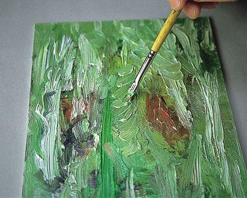 油絵具は筆のタッチがそのまま残る。絵具を多めに使って盛り上げながら塗ると、ダイナミックなタッチに。