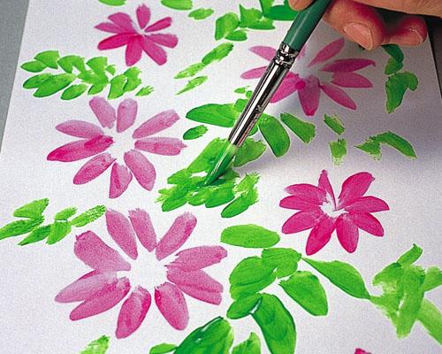 細かな部分は、細い筆やへら筆の角の部分を使う。