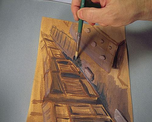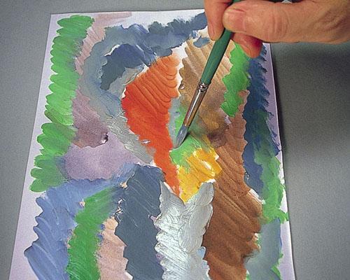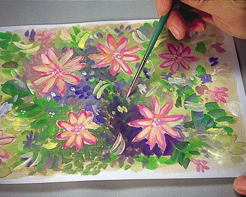 水の量を減らせば、不透明絵具と同じような使い方もできる。
