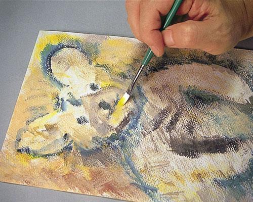 画用紙や水彩紙、金属、布ボール紙にジェッソを塗れば筆の運びがよくなる。
