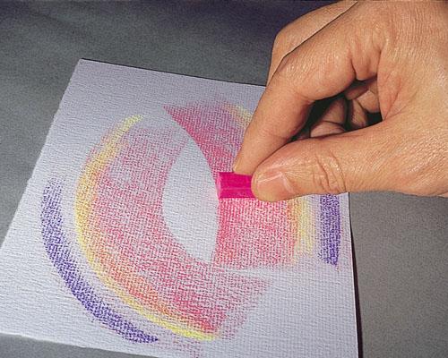 塗りすぎた時、間違えた時は消しゴムで色を取る。また、光の表現などにも効果的。普通の消しゴムや砂消し等、消しゴムの種類によって、消え方に違いがある。