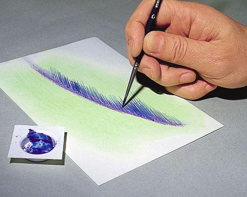 細密な表現は、パステルを粉末にして水に溶き、筆で描き込む。