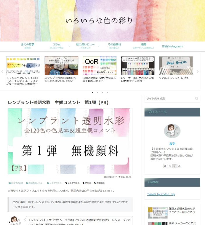 いろいろなメーカーのいろいろな画材を使ってみたいという野望がおありの まやさん によるブログ「いろいろな色の彩り」に、レンブラント水彩絵具を取り扱って頂きました。