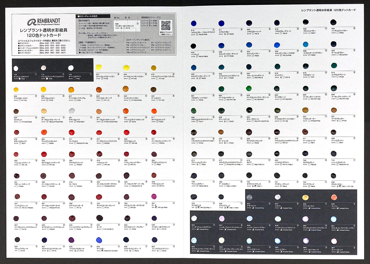 製品情報 水彩絵具 水彩絵具アクセサリー レンブラント水彩絵具ドットカード 120色